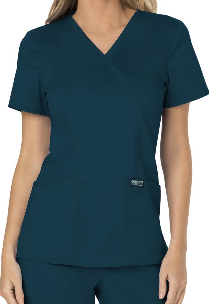 Cherokee Revolution Women Medical Scrub Mock Wrap blue caribbean
