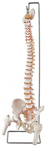 Fully flexible life size vertebral column consisting of the occipital plate, cervical, thoracic and lumbar vertebrae, sacrum, coccyx, pelvis with symphysis, removable femur hedas.