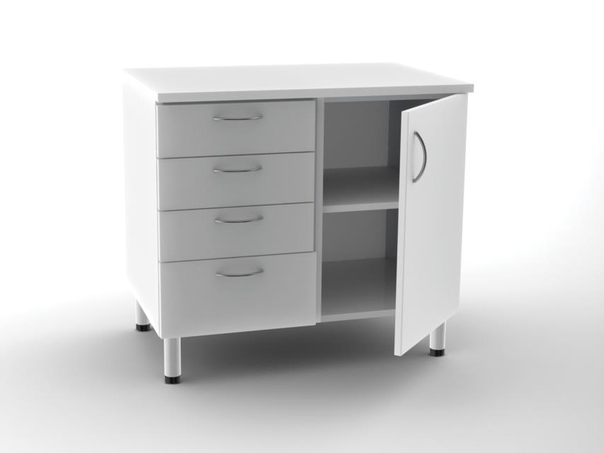 It comes with 4 drawers and 1 door with 2 shelves, it can be completed with the optional changing mat for babies (cod. 111276).