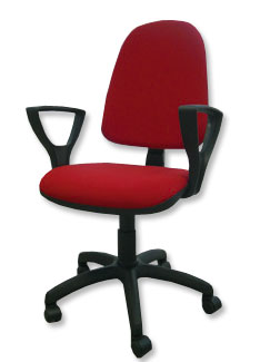 Functional office upholstered chair, with armrests and polypropylene swivel base, movable backrest with permanent contact. Perfect solution for consulting rooms/offices.