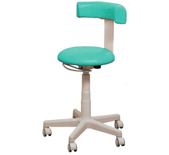 Height can be comfortably adjusted by means of a gas pump; back-rest is 180° revolving and depth-adjustable. Seat is balanced density padded and Peltex-lined.