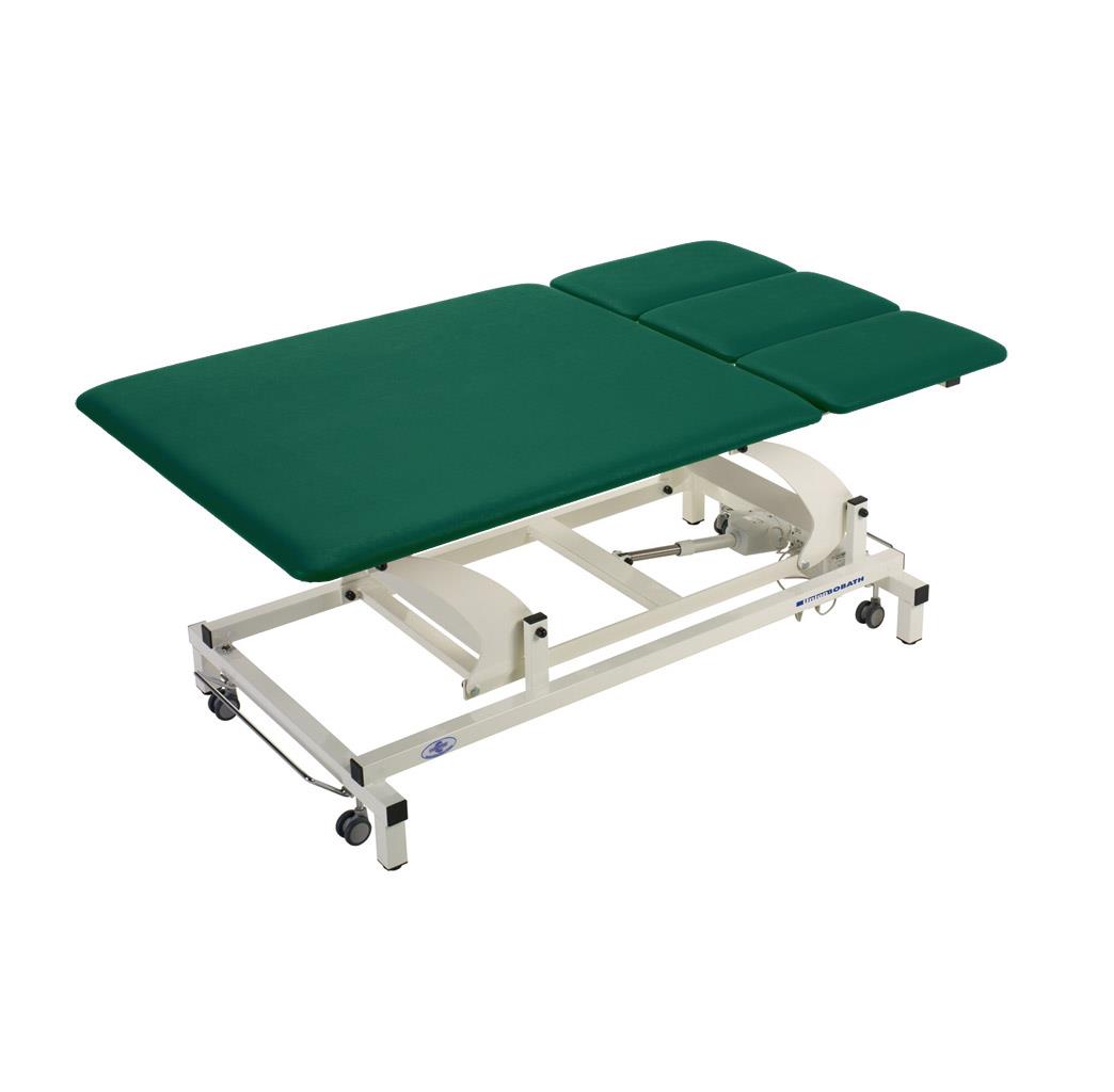 Bobath couch for rehabilitation treatments, designed to be used with the R.I.C. Electrically adjustable in height by means of a low voltage perimeter bar (24V). Overall width of 120 cm with positive adjustable head in the central part up to 90 °, servo-assisted by gas spring.