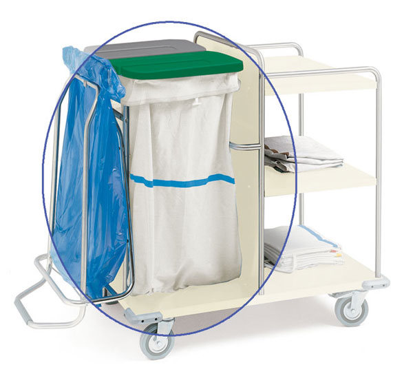 Wraping bag washable up to 200 times, for laundry trolley. White sinthetic tissue with blue stripe.