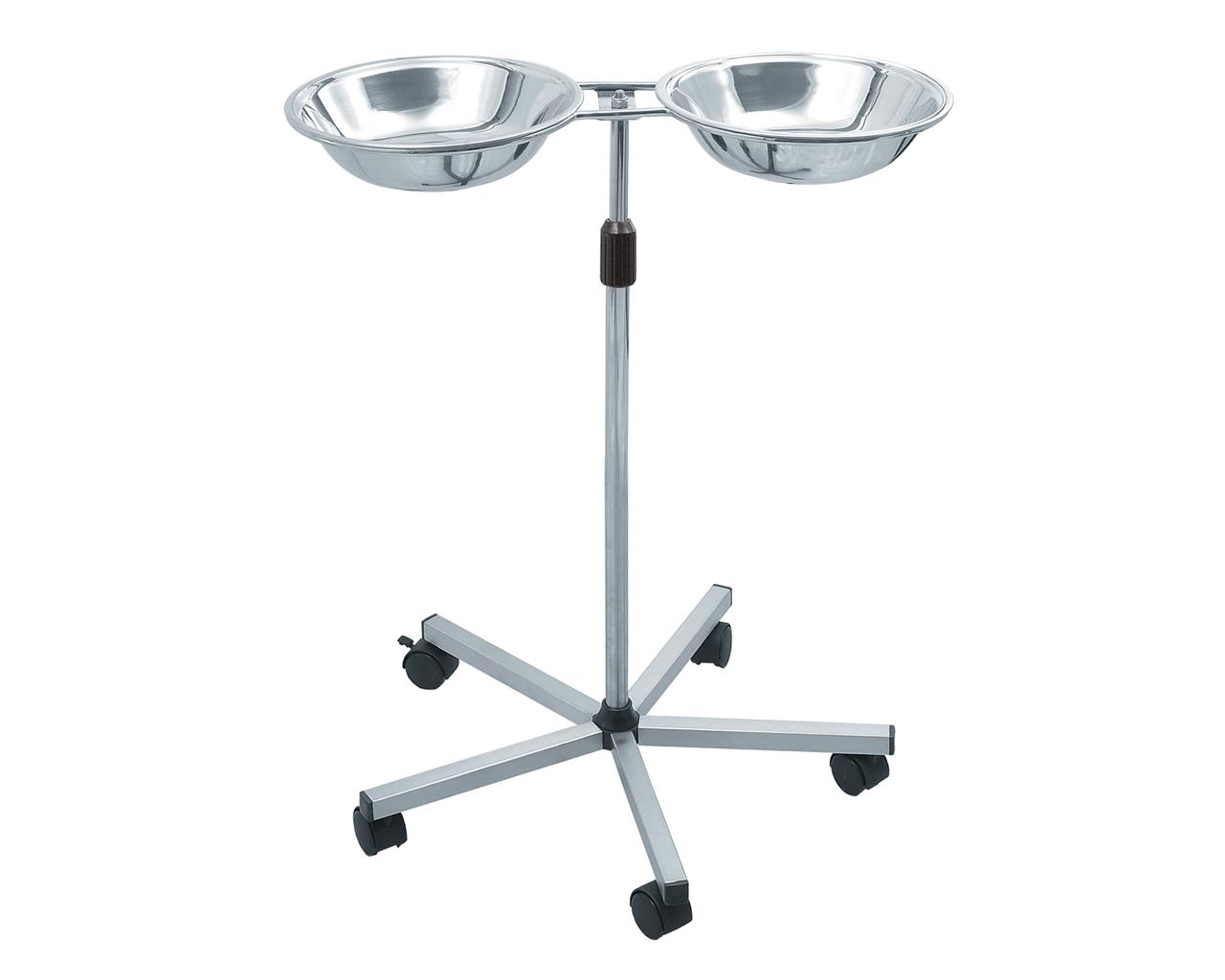 AISI 202 stainless steel stand and base with 5 plastic wheels, one with brake, and with two AISI 304 stainless steel bowls.