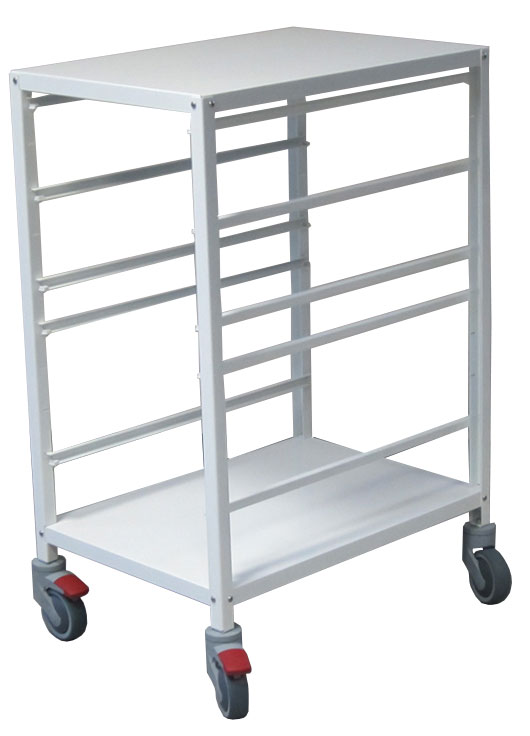 Service trolley for “ISO“ trays or baskets (not included) made of epoxy powder painted steel. With 4 pivoting castors, 2 with brake.