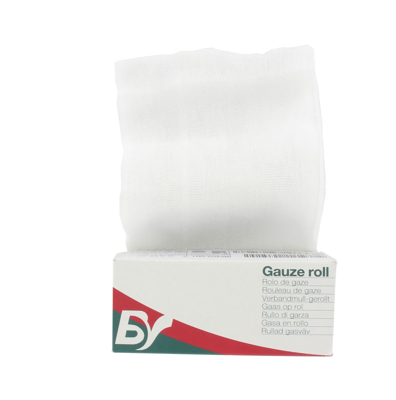 100% cotton gauze roll according to European Pharmacopoeia and EN 14079. X-ray detectable with approx. 60% barium sulphat and 10 cm width, made of 8 cotton plies.