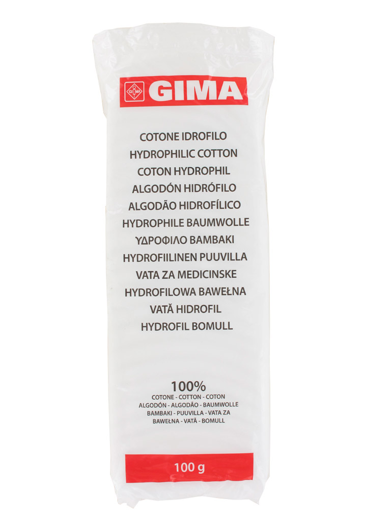 Hydrophilic 100% cotton for sanitary and cosmetic use, hygiene, exudate absorption, non-injured skin disinfection.