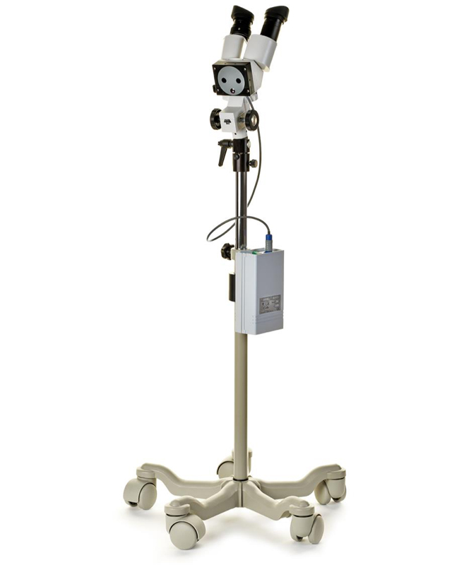 Easy to use halogen colposcope mounted on a 5 wheels base.