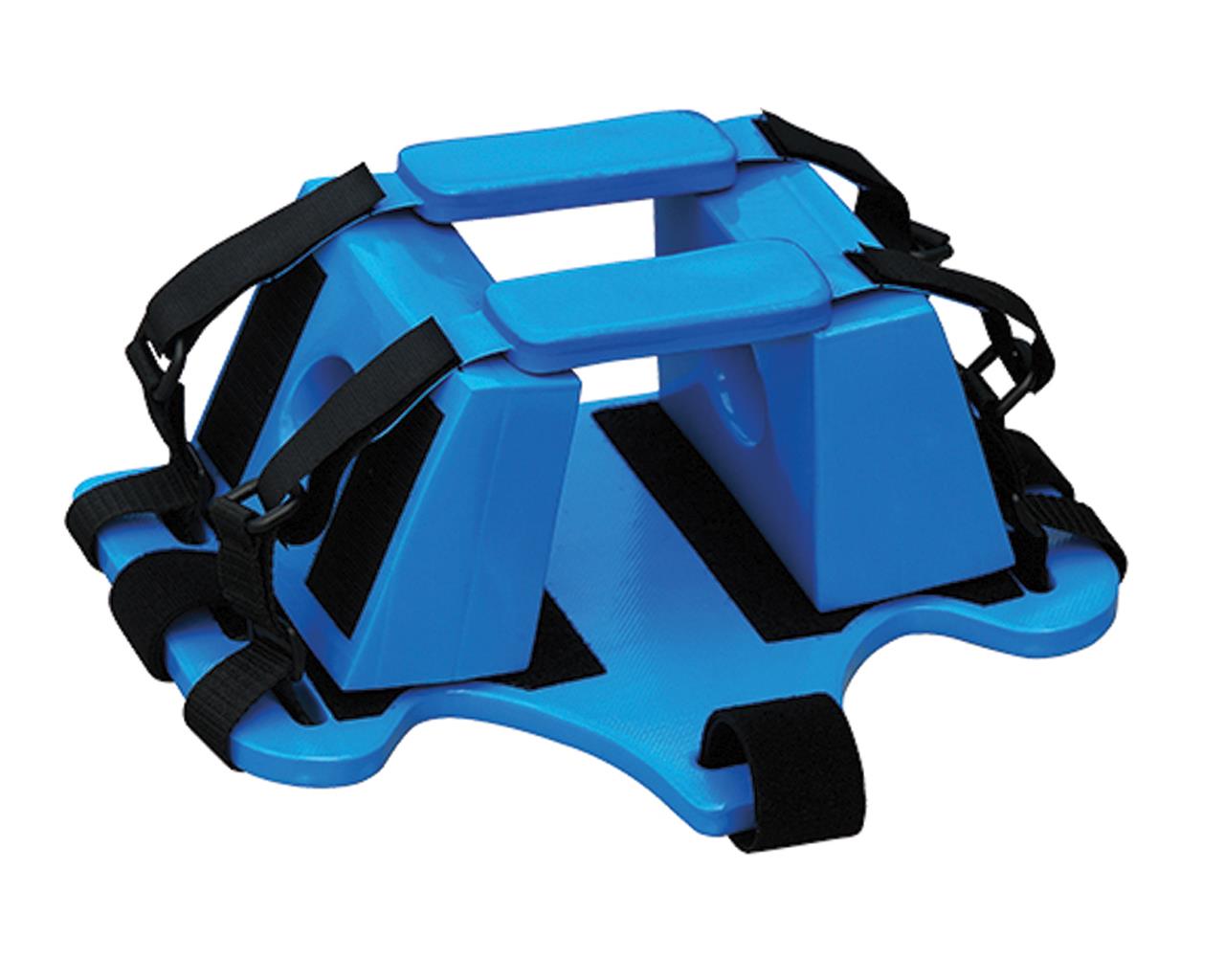 Head immobilizer composed of two head blocks and two straps to prevent any head movement of the injured person during transport. Both sides have an ear hole. It can be used with scooping and PE stretchers.