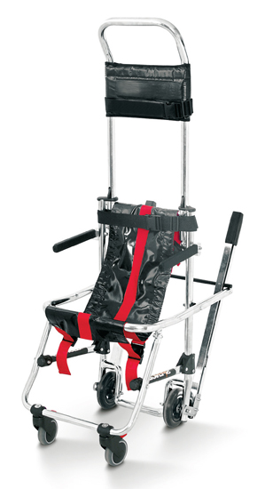 The innovative self braking slide system offers the operator total control during the stair descent. Manufactured from welded aluminium with polished finish. Adjustable seat strengthened with Spentex®.