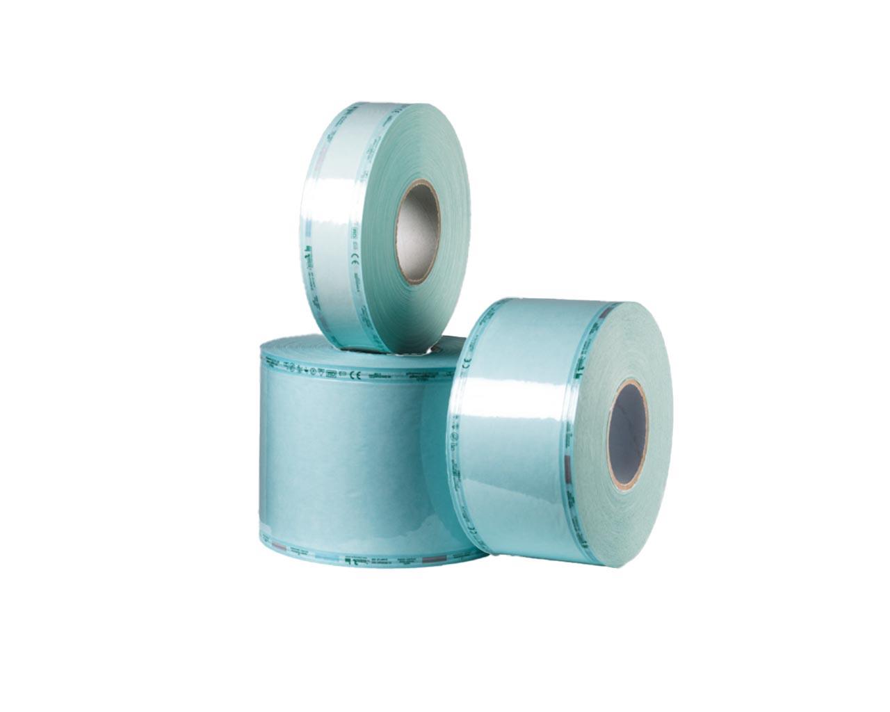Sterilization rolls made of high grammage medical paper (60 g/m²) and a double layer of polyethylene/polypropylene film (55 g/m²). Specifically designed to provide high antibacterial protection suitable for medical sterilization.