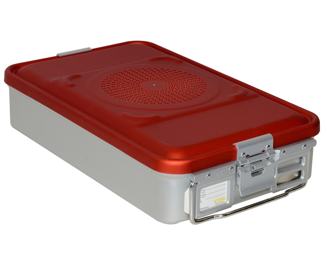 Sterilisation container with one filter and non perforated bottom. Autoclavable at maximum 134°C and 2.2 bar.