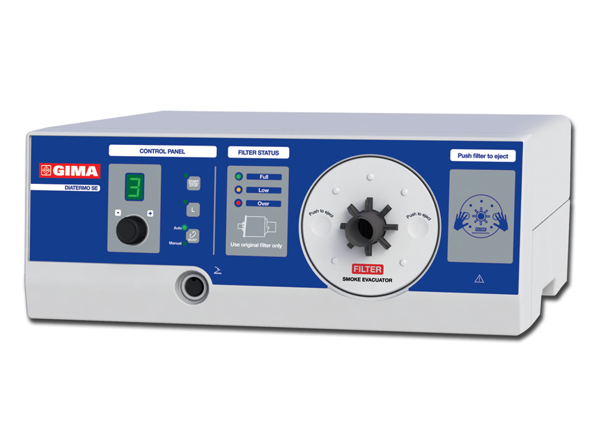 Smoke evacuator has an aspiration electronic control, indicating the filters wearing status. There are two different kinds of quickly replaceable ULPA filters with active carbons: the BLUE filter is the first filter one and it is included with the unit for an initial time of use (5 hours), the RED filter is an optional spare part, developed for a longer time use (20 hours). They have connector of 7/8”.