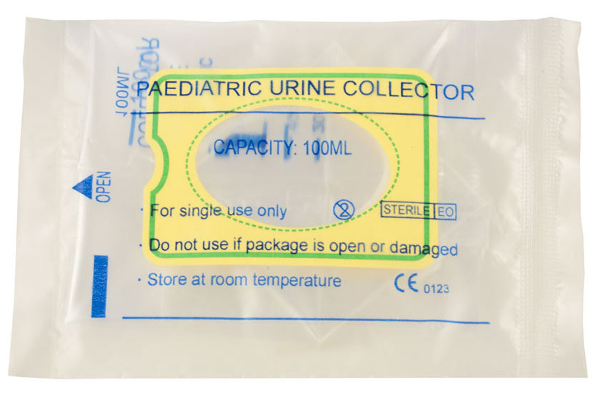 Sterile paediatric urine bags, that can be used for boy and girl.