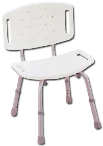Shower chair with backrest. Seat and backrest in plastic material.