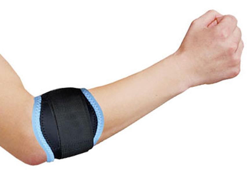 Elbow support designed to reduce swelling from minor injuries. Through its silicone pad it provides relief at muscle insertion point, plus flexible compression and proprioception improvement.