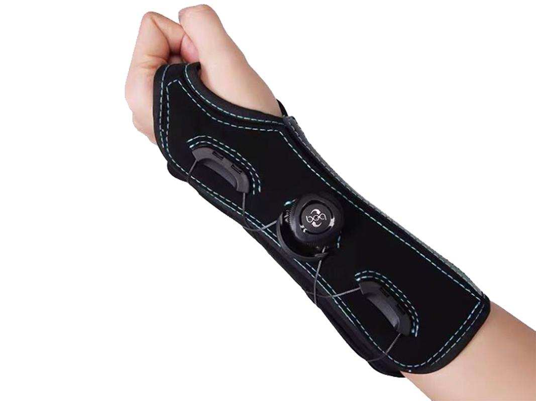 Brace for wrist immobilization with Q-fit dual closure system providing excellent fit, convenience and durability. Comfortable, breathable skin-friendly material with anatomically-contoured aluminium palmar splint.