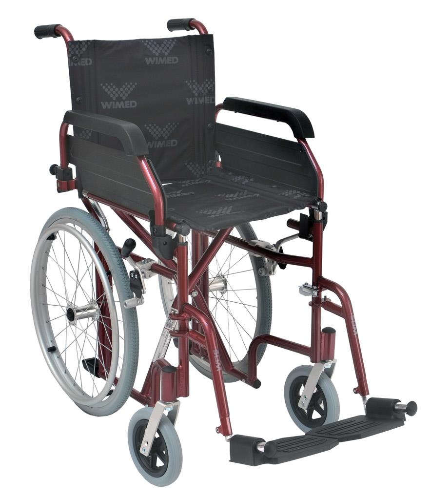 Self-propelled wheelchair specially designed for narrow passages thanks to the rear wheels positioned under the seat: